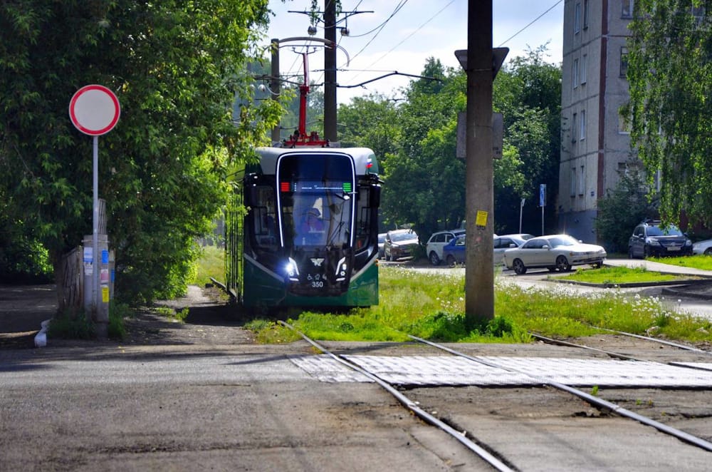 Современные трамвайные вагоны произведены на Усть-Катавском вагоностроительном заводе. Их главная особенность — низкий пол. Полная вместимость вагона составляет 170 человек, сидячих мест — 32.