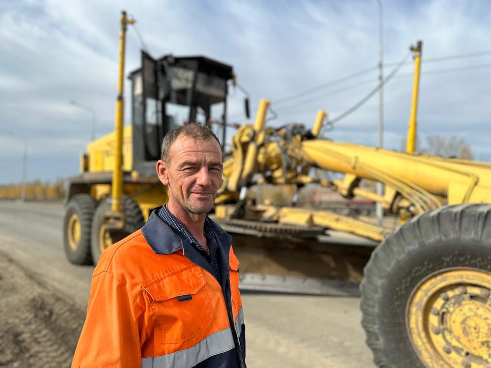 Александр Бланкин рассказывает, что за годы работы принял участие в ремонте сотни дорог и когда сам едет по ним — берет гордость, что они сделаны именно его руками.
