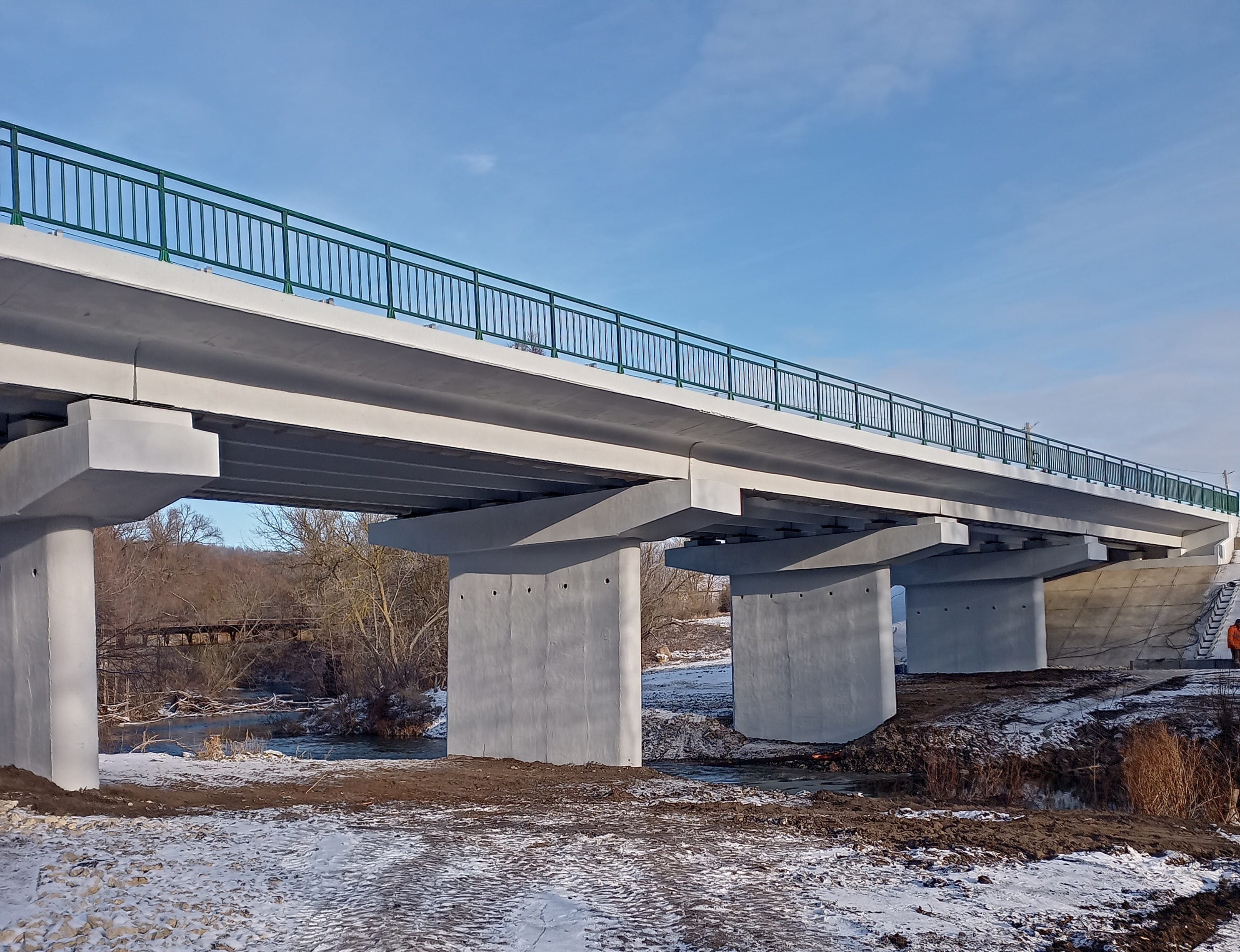 Протяженность объекта ― 65 пог. м. Специалисты обновили и укрепили опоры, заново забетонировали ригели, усилили пролетные строения монолитной плитой, уложили гидроизоляцию и дорожное покрытие. Мост стал выше примерно на полметра, поэтому переделать пришлось и подходы к нему. Продольный профиль дороги стал более ровным.