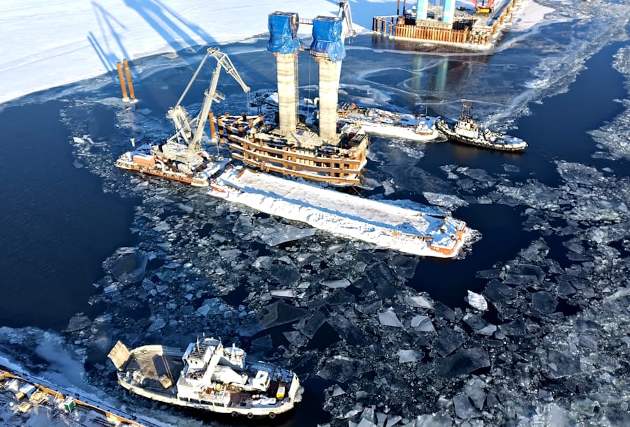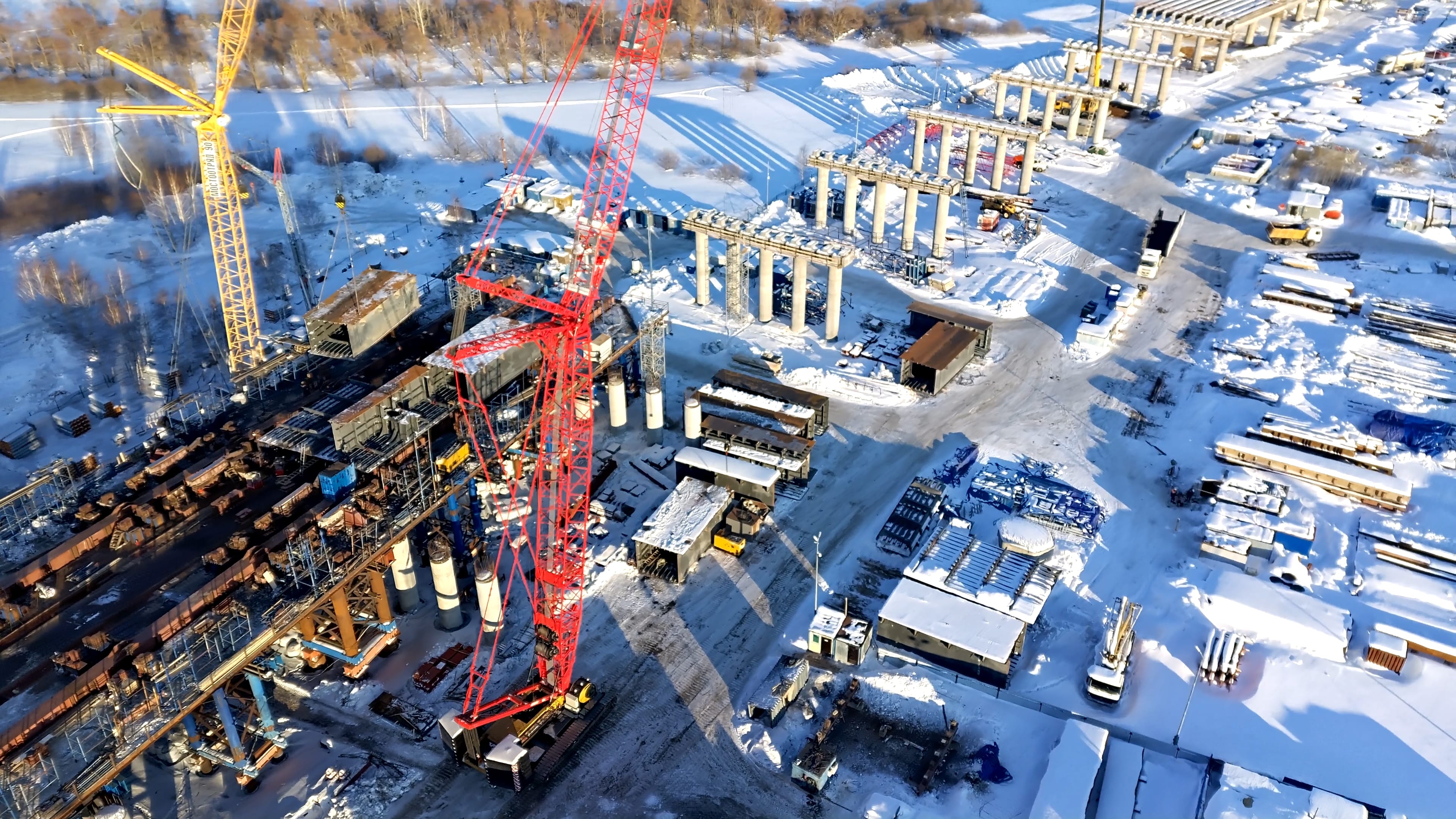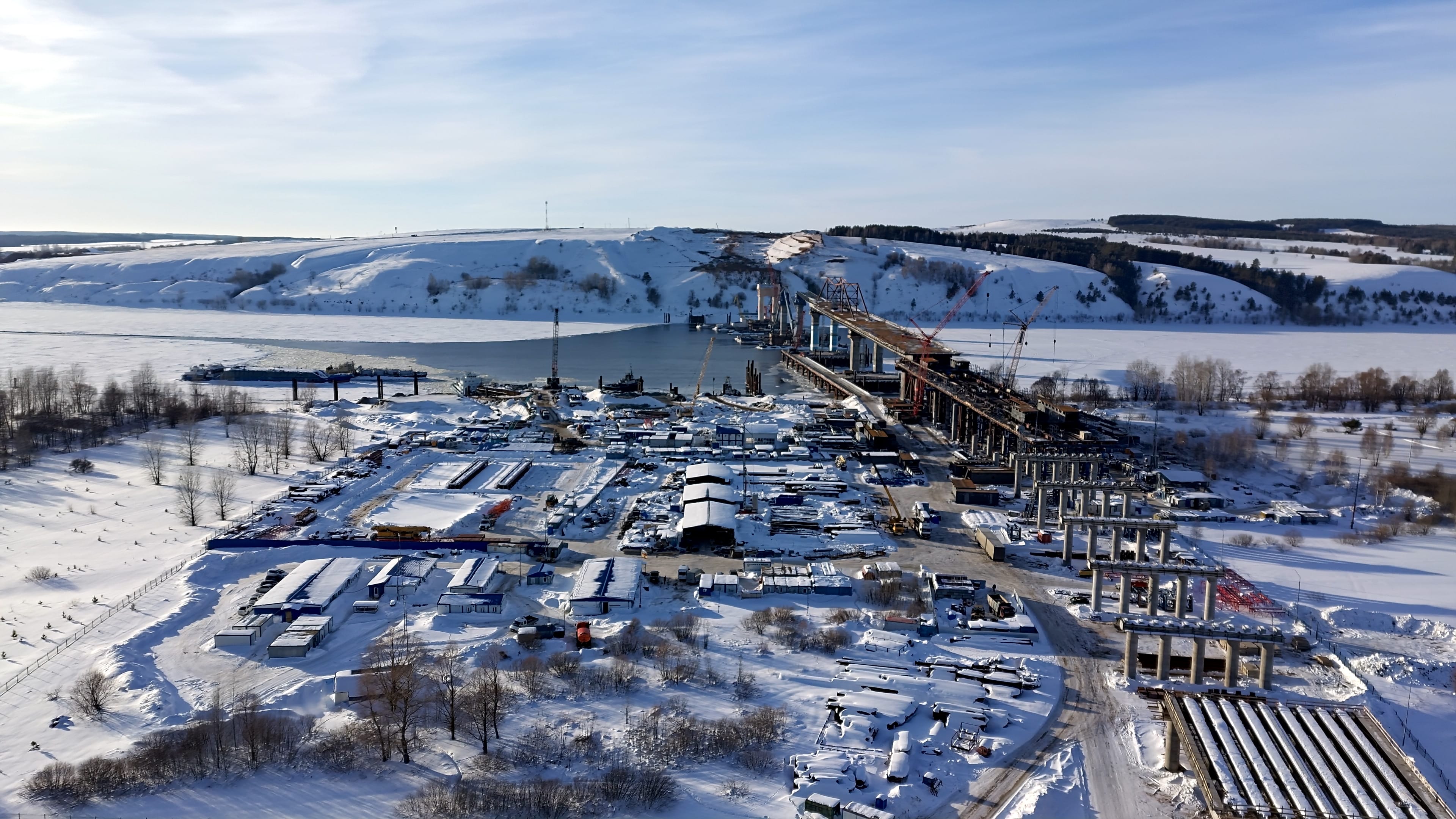На участке успешно завершен очередной этап надвижки металлического пролетного строения и на 65% выполнено строительство русловых опор. Мост, соединяющий берега Камы, будет стоять на 22 опорах, из которых 15 опор – эстакадной части и 7 ‒ русловой. Самый трудоемкий процесс при строительстве искусственного сооружения – возвести опоры в русле реки в условиях обеспечения непрерывной судоходной навигации.  К строительству русловых опор специалисты приступили в октябре 2022 года. В данный момент в работе все семь опор. На 95 % выполнены работы по возведению седьмой, шестой и пятой из них. Осталось произвести их окраску.