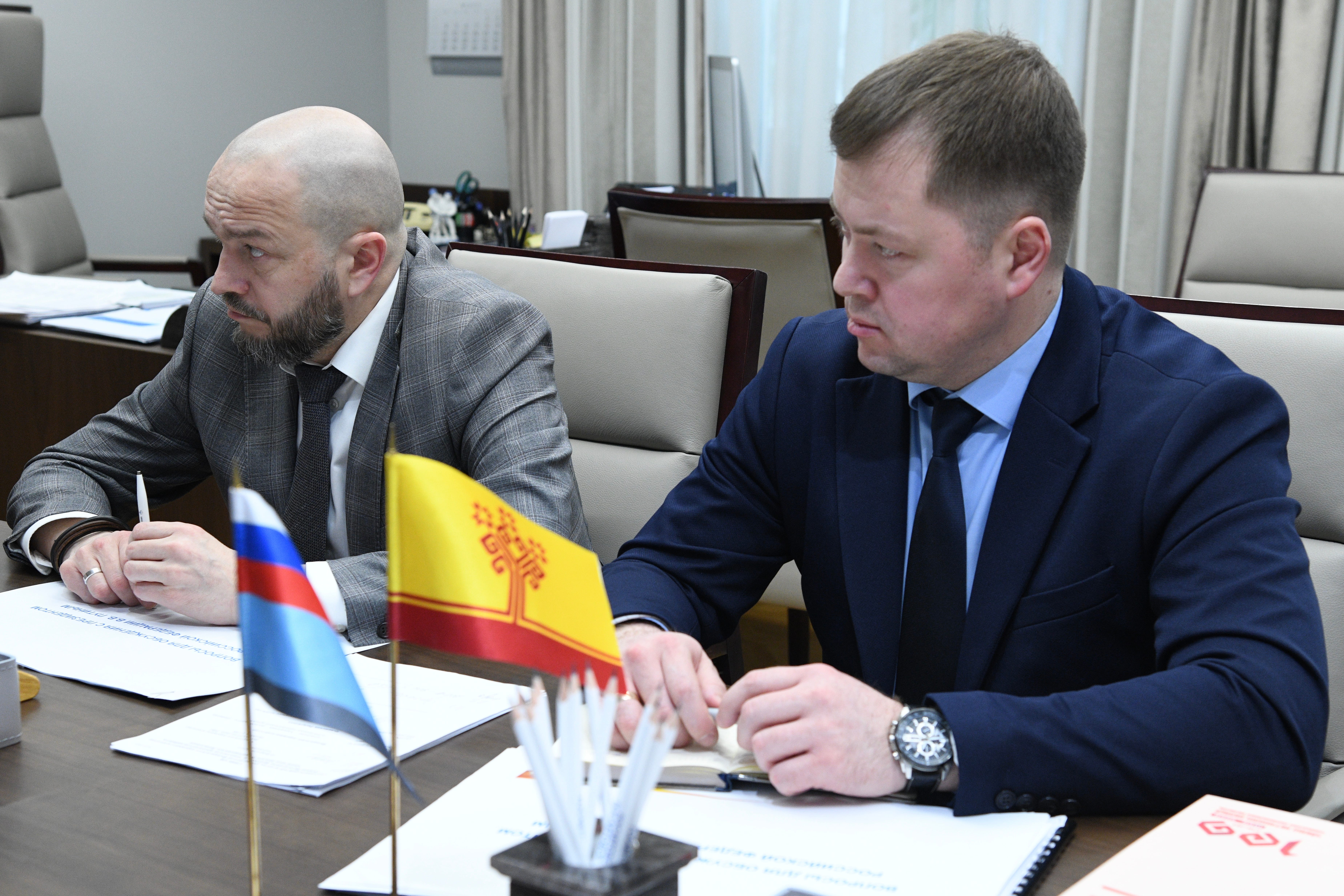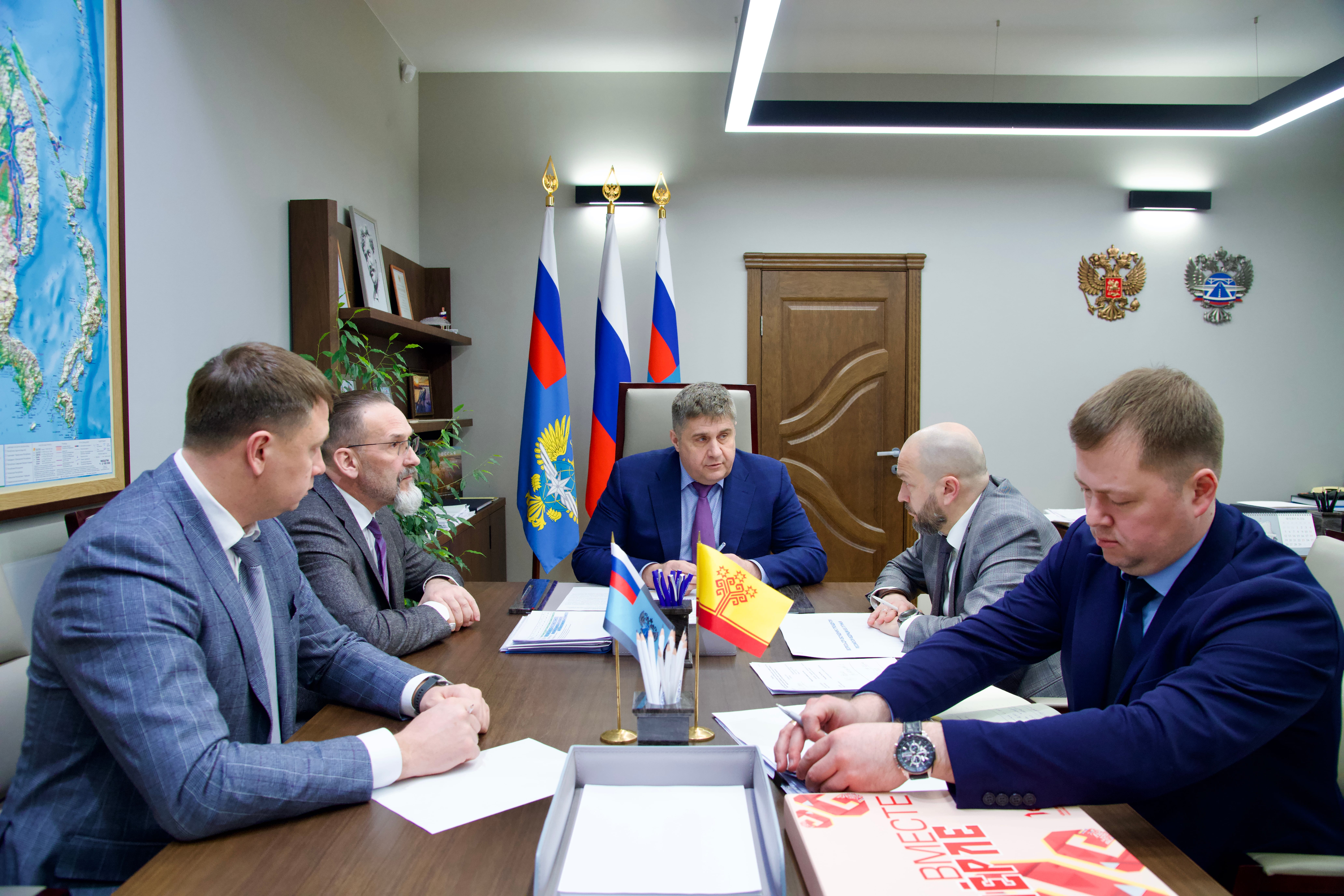 Сегодня, 16 февраля, в Федеральном дорожном агентстве состоялась рабочая встреча руководителя Росавтодора Романа Новикова с вице-премьером Правительства Чувашской Республики Павлом Даниловым и министром транспорта и дорожного хозяйства Чувашской Республики Максимом Петровым. В обсуждении также приняли участие заместитель руководителя Росавтодора Игорь Костюченко и начальник Управления регионального развития и реализации национального проекта Федерального дорожного агентства Радик Фаразутдинов.